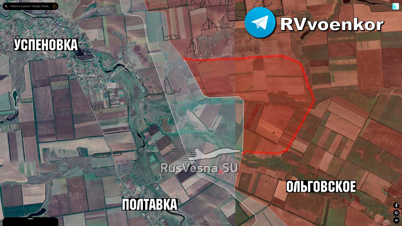 Севернее Ольговского наши части закрыли «карман» площадью до 6,6 км². Бои продолжаются в районе Полтавки и на подступах к Успеновке — это подтверждают даже вражеские аналитики, публикующие карты.