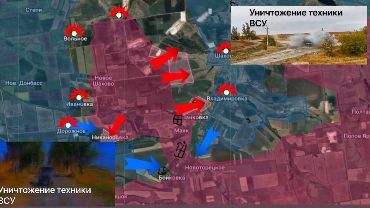 — В районе Панковки — наши подразделения вернули контроль над населённым пунктом, продвинулись на 1,5 км и вышли к западной окраине Владимировки, где закрепляются.