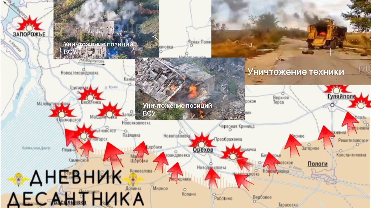 Российская армия сохраняет инициативу на всём протяжении линии фронта от Приморского до Гуляйполя. Подразделения ВДВ и пехоты продолжают методично продвигаться, выдавливая противника с занятых позиций.