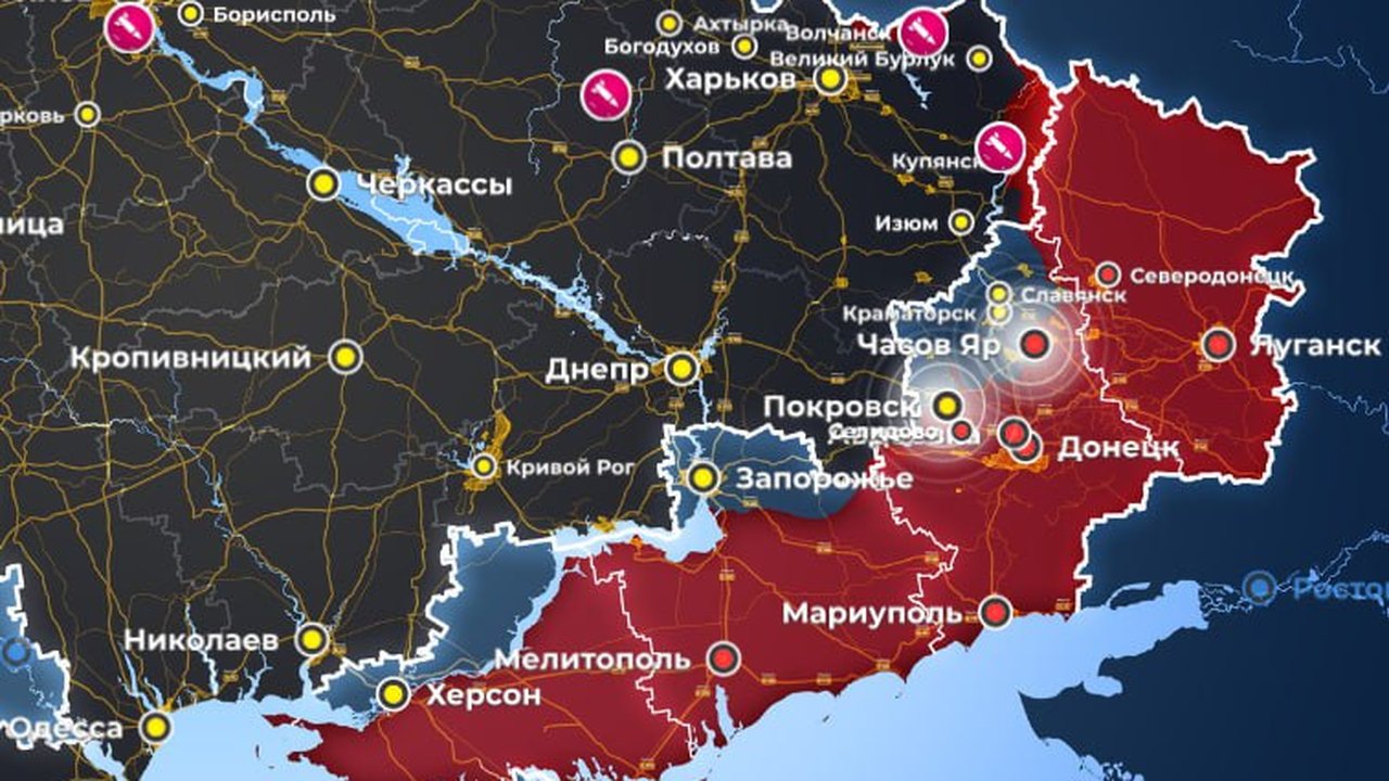 Российские разведгруппы замечены на юго-восточной окраине Константиновки. Подразделения ВС РФ наступают севернее Александро-Шультино и восточнее Иванополья. Сообщается о диверсии противника — подрыв неработающего аммиакопровода Тольятти–Одесса в районе Русин Яра. Жертв нет, трубопровод давно выведен из эксплуатации.