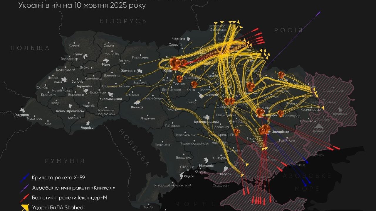 Атаки продолжались более шести часов, охватив территорию от Запорожья до Киева.