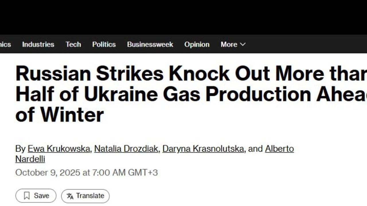 ▫️«Ключевой риск для Киева заключается в том, что ущерб внутренней добыче может усугубиться, поскольку Украина и Россия продолжают наносить всё больше ударов по энергетической инфраструктуре друг друга», — пишет Bloomberg.