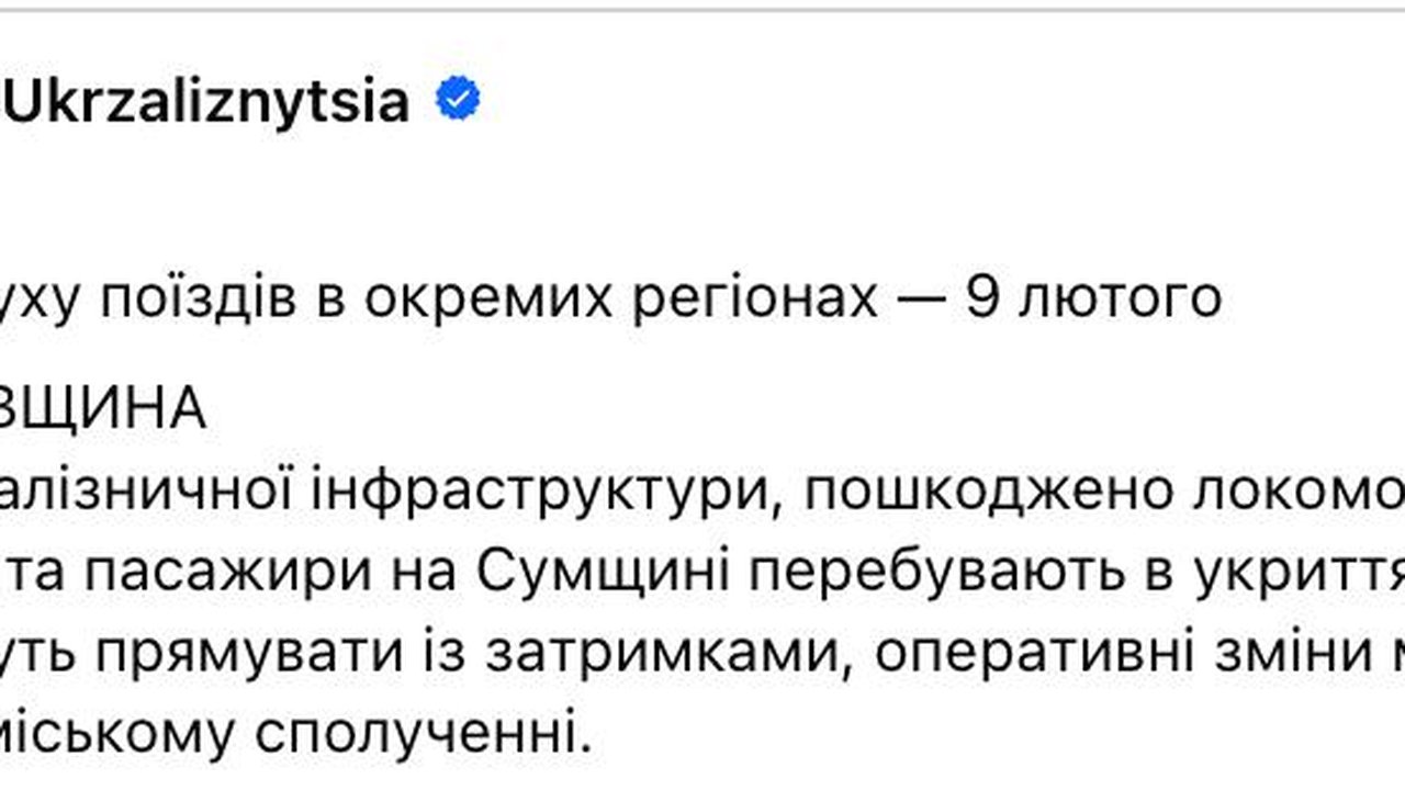 Украинская сторона подтверждает повреждение железнодорожной инфраструктуры в Сумской и Черниговской областях.