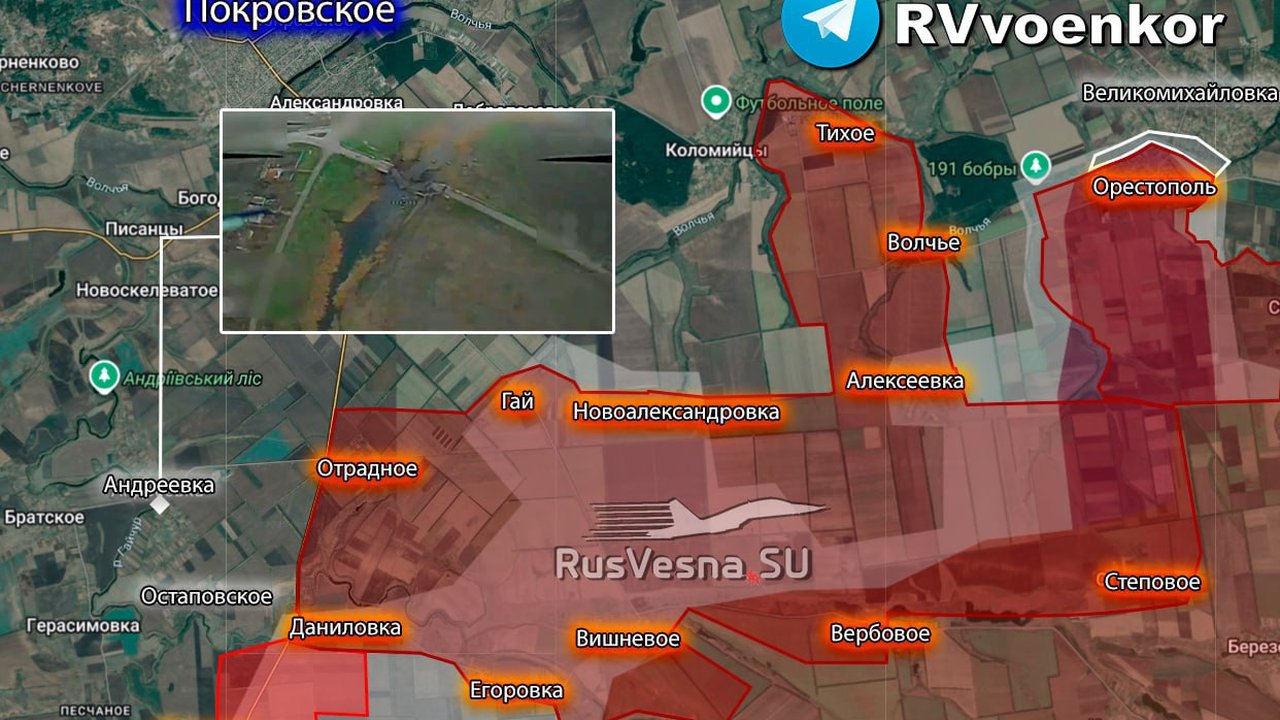 Российские подразделения развивают наступление сразу на нескольких участках севернее Красноармейска. Бои идут за населённые пункты, которые ВСУ пытаются удерживать как узлы обороны.