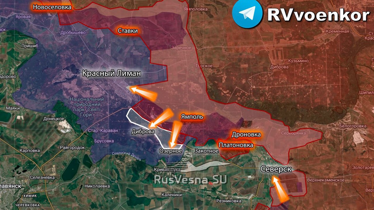 Российские войска продолжают наступление на Краснолиманском направлении, расширяя контроль в лесополосах между Красным Лиманом и Северском.
