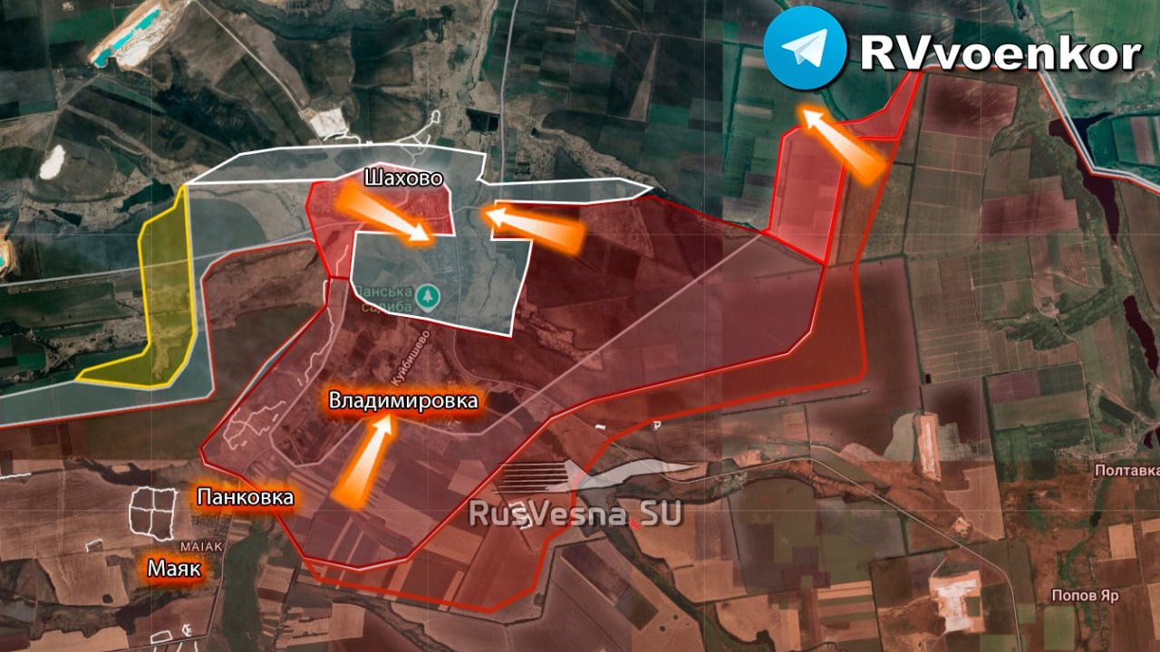 На Дружковском направлении российские подразделения продолжают давить врага, развивая успех после освобождения Владимировки. По последним данным, в н.п. Шахово наши бойцы завершают зачистку, выбивая противника из оставшихся укреплений.