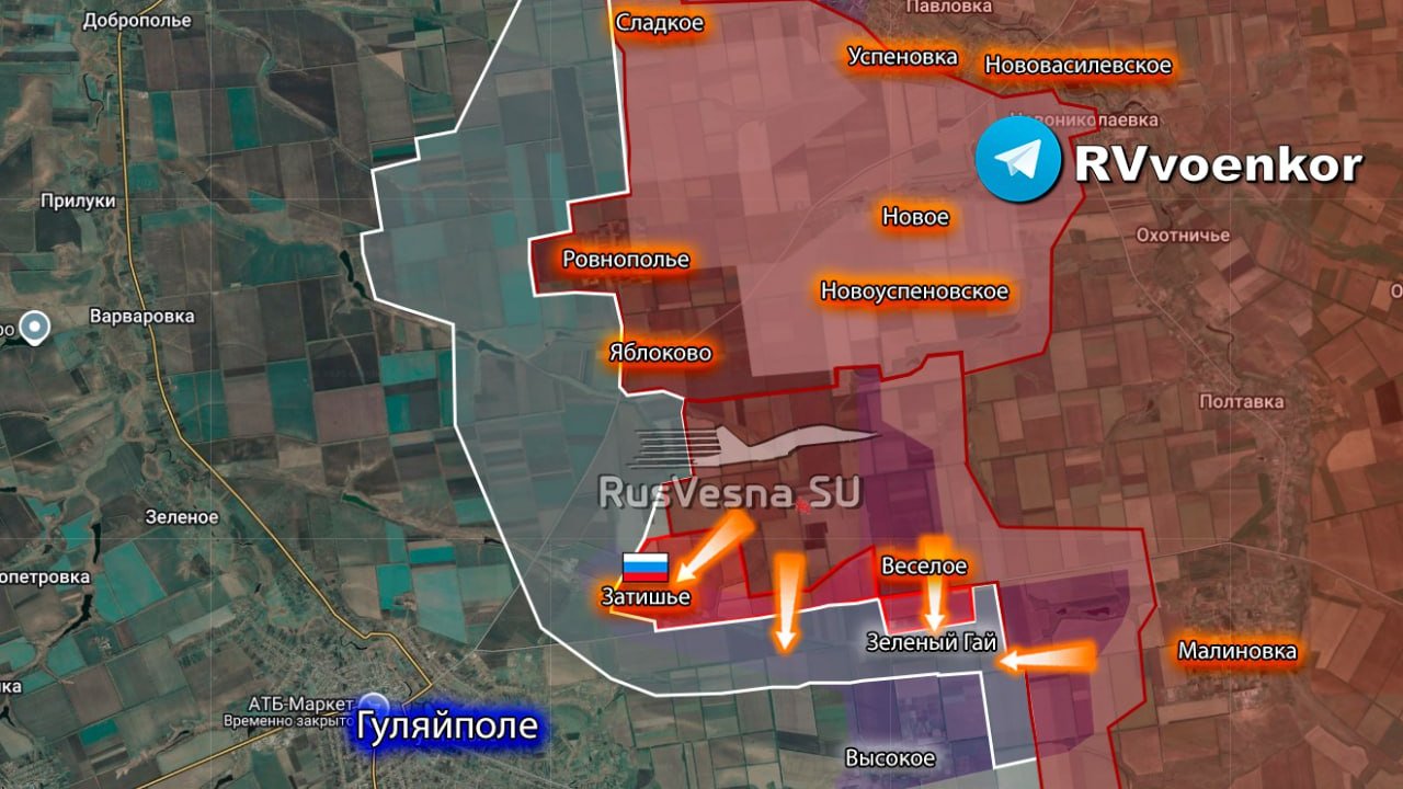 На Гуляйпольском участке наши штурмовые группы продолжают уверенное продвижение. По данным полей, российские подразделения группировки «Восток» завершили зачистку населённого пункта Затишье в Запорожской области.