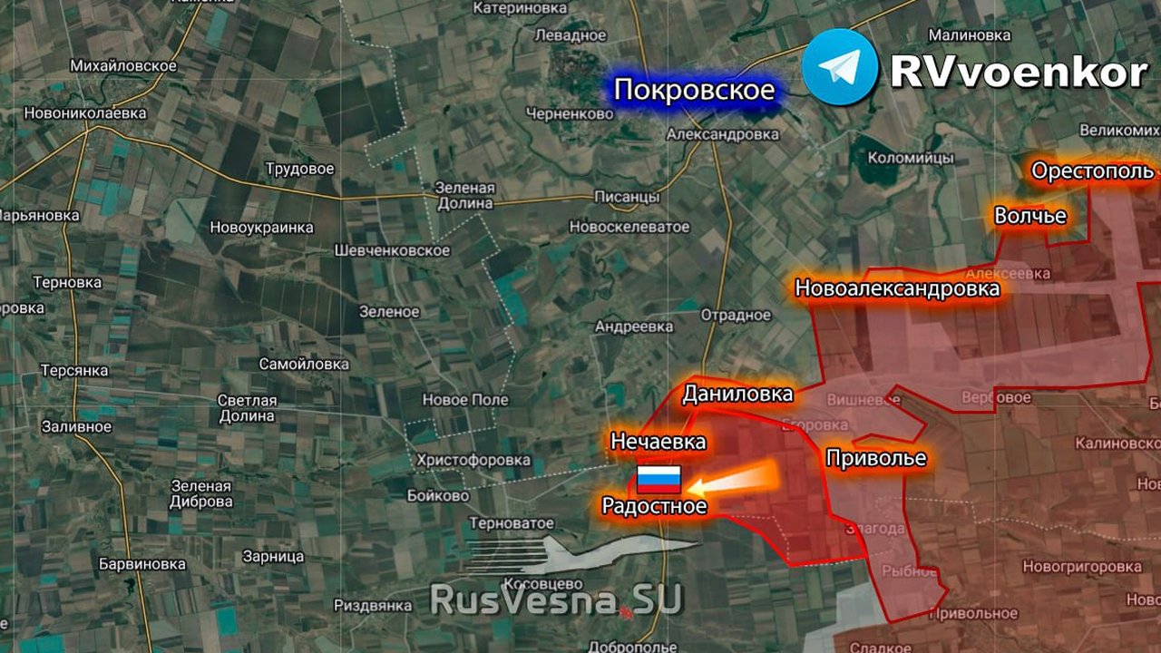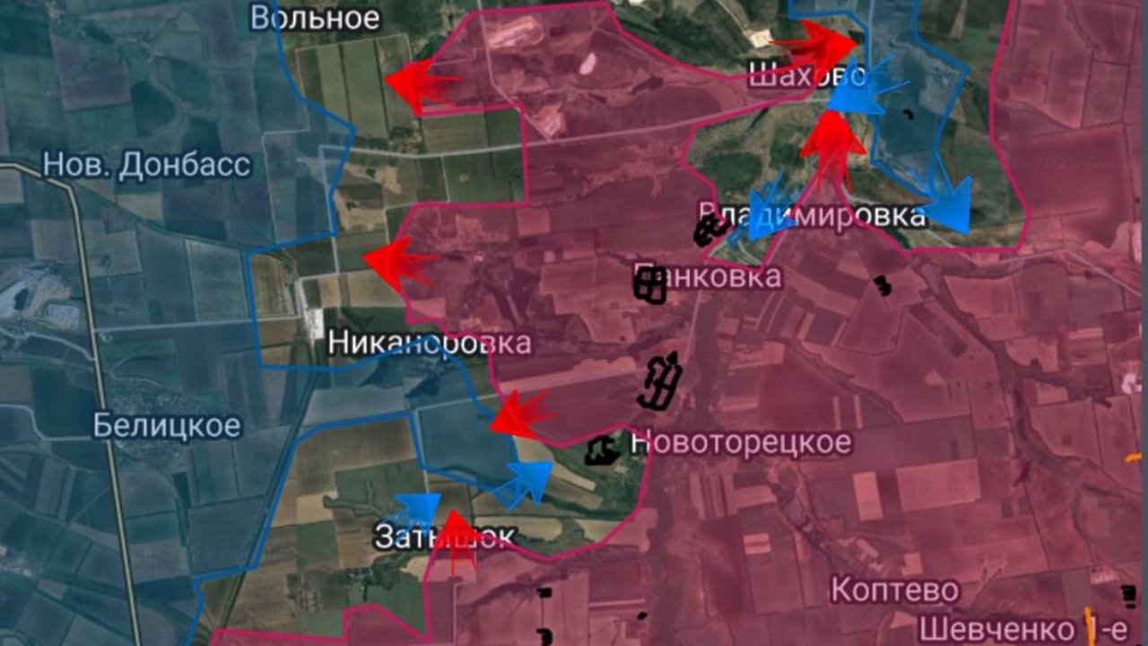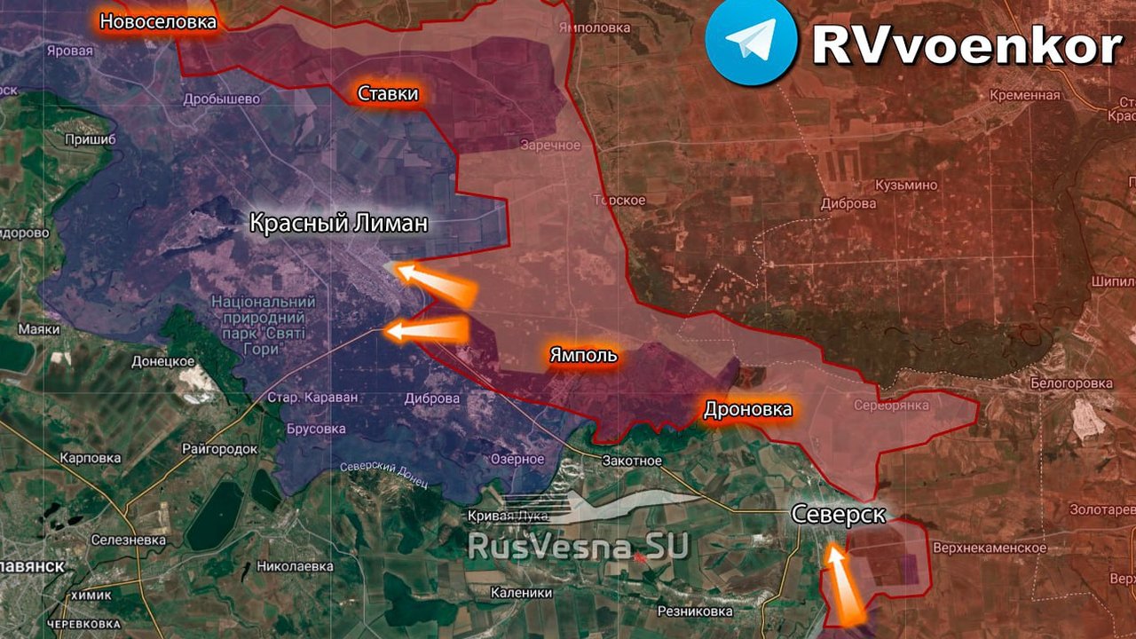 Российские войска продолжают наращивать продвижение сразу на двух участках — под Красным Лиманом и под Северском. На карте чётко видно, как наши штурмовые группы с северо-востока и востока сжимают оборону противника, занимая ключевые рубежи.